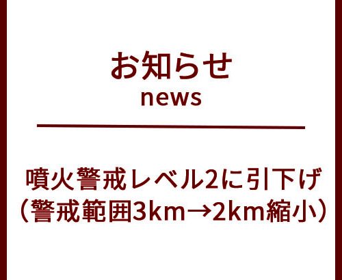 【お知らせ】新燃岳の火山噴火警戒レベル引き下げについて